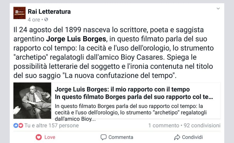 Oggi voglio ricordare e pensare molto di più di quanto non faccia tutti i giorni.. a Borges, con gratitudine e oltre, tanto di più..all’essere immaginario per totalità ed immensità..alla mia vita immaginaria, ai miei sogni, i miei amori, i miei ideali…al labirinto…si muore fisicamente, non dimenticartelo, si commettono i più efferati omicidi, attraverso l’indifferenza..grazie a Borges e a me..