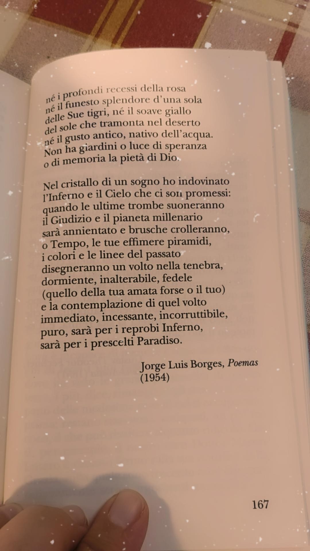 Sono, in sintesi, Borges come si vorrebbe che fosse: un poeta disinnescato, sapienziale, immediatamente “spendibile”, quindi privo di spigoli come il suo insistito pedantismo, ma soprattutto banalizzato in formule facilmente digeribili.